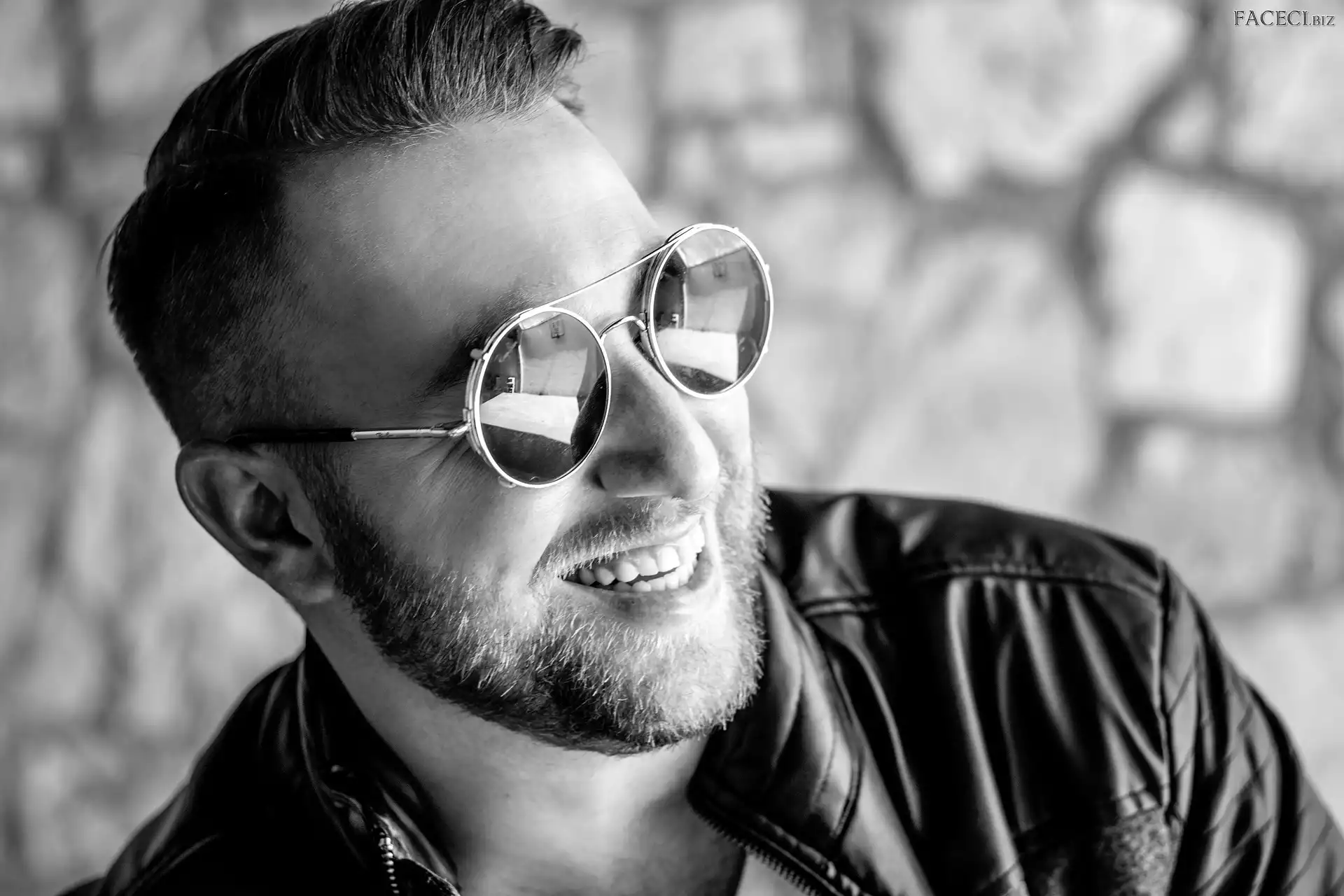 Kurtka, Zarost, Uśmiechnięty, Mężczyzna, Okulary - faceci.biz